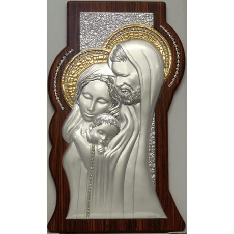 Obraz v prevedení striebro na dreve s motívom Svätej Rodiny v rozmere 37 x 22 cm.