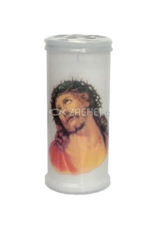 Plastový kahanec zdobený obrazom Krista s tŕňovou korunou. Vďaka odolnému materiálu je vhodný aj na vonkajšie použitie. Ideálny ako pietna spomienka na vašich blízkych.
