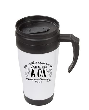 Skvelý termohrnček s povzbudzujúcim biblickým nápisom. Hrnček obsahuje praktický skrutkový uzáver s otvorom na pitie. S dvojitou termo stenou zachová teplotu vášho obľubeného nápoja či už ho chcete zachovať teplý, či studený. Jeho praktické využitie oceníte v kancelárii, na cestách či na horách. Hrnček je dodávaný aj s kartónovou krabičkou, ktorá uľahčí jeho zabalenie, ak ho chcete darovať ako darček.