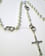 Biely ruženec vhodný ako svadobný darček. Jednotlivé desiatky sú prepojené symbolickými obrúčkami. Biele guľôčky sú pospájané kovovou retiazkou striebornej farby. Kríž a obrúčky sú patinované, teda tmavšej farby.