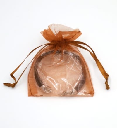 Čierny kožený náramok s krížikom v hnedom darčekovom balení.