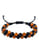 Ručne robený šnúrkový náramok tvoria čierne guľôčky zo sopečnej lávy pozapletané s jantárovými guľôčkami oranžovej farby. Zrnká majú priemer 6 mm. Na náramku sa nachádza aj jednoduchý malý kovový krížik striebornej farby. Veľkosť je možné prispôsobiť zatiahnutím šnúrky.