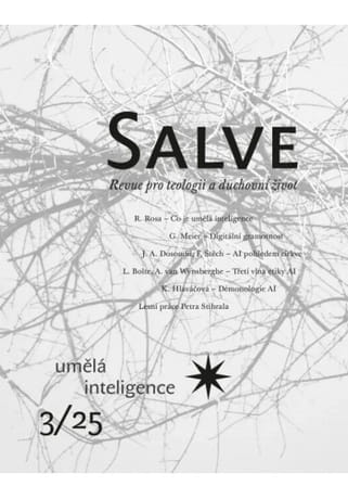 Toto číslo Salve nahlíží na problematiku AI z antropologické perspektivy. Všudypřítomnost AI nás vede k přemýšlení o nás samých, o podstatě a charakteristických rysech našeho lidství. AI je naše každodenní pomocnice, přítelkyně, asistentka, soupeřka i zrcadlo, v němž můžeme spatřit svůj vlastní obraz.