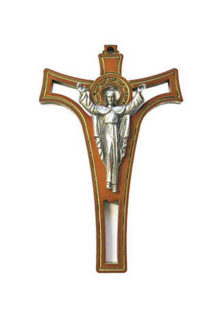 Nejde o klasický kríž s ukrižovaným telom Pána Ježiša, ale o zobrazenie Krista ako víťaza nad smrťou.