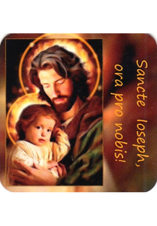 Farebná magnetka s rozmerom 5 x 5 cm, na ktorej je znázornený svätý Jozef držiaci malého Ježiška. Vpravo je latinský nápis Sancte Ioseph, ora pro nobis! (v preklade: Svätý Jozef, oroduj za nás!).