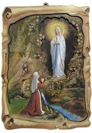 Dekoratívny 3D obraz s motívom Panny Márie Lurdskej prináša do vášho domova pokoj, vieru a duchovnú atmosféru. Zobrazuje známu scénu zjavovania Panny Márie svätej Bernadete v Lurdskej jaskyni, ktorá patrí medzi najvýznamnejšie mariánske pútnické miesta. Jemné farebné spracovanie a 3D efekt dodávajú obrazu hĺbku a robia z neho krásny doplnok do každého kresťanského interiéru.