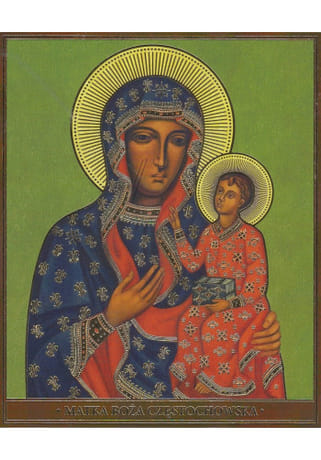 Obrázok je vyrobený v malom rozmere 12 × 9,8 cm a v naspodku má nápis Matka Boża Częstochowska (v poľskom jazyku).