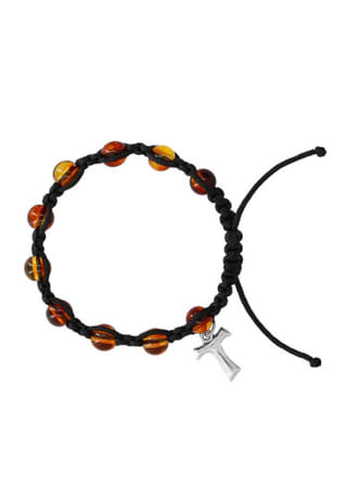 Guľôčky zo syntetického jantáru dodávajú náramku teplý a jemný vzhľad. Dominantným prvkom je kovový krížik TAU v striebornej farbe, ktorý mu dodáva jedinečný duchovný význam.