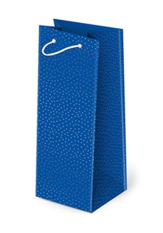 Elegantná darčeková taška určená na balenie jednej fľaše vína, sektu alebo iného prémiového nápoja. Vďaka štýlovému sýtomodrému prevedeniu s jemným reliéfnym vzorom a metalickou fóliou pôsobí luxusne a je ideálnou voľbou na darčekové príležitosti.